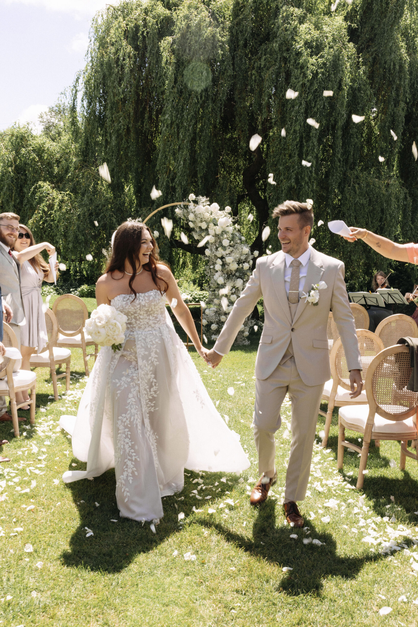 Garden ceremony at 3pm. Cocktails on the terrace at 5. Dinner in the barn at 7. Dancing until dawn. Breakfast together the next morning. Your guests never leave the estate — no transfers, no stress.