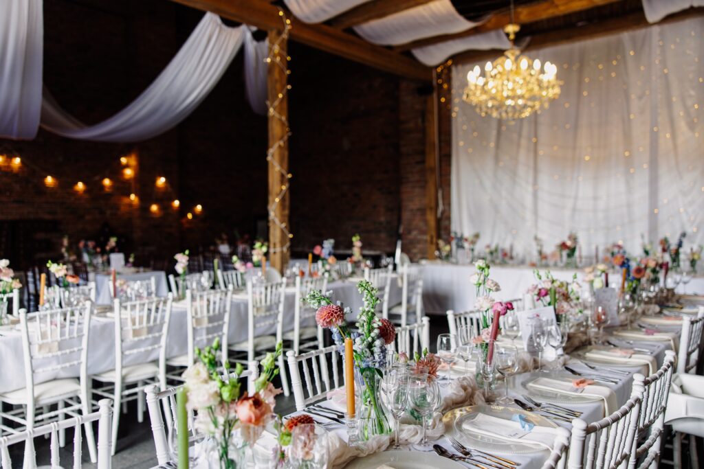 A typical Saturday wedding for 80 guests — full catering, accommodation for 30, DJ, coordinator and ceremony — comes to approximately 280,000–350,000 CZK (€11,000–14,000).